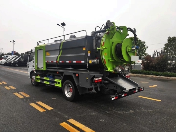 吸污部分:7方污罐,罐體6mmQ235優(yōu)質(zhì)碳鋼,配淄博SK-12水循環(huán)泵,8米吸污管一根,進(jìn)氣管加過濾網(wǎng),防溢閥加高,后蓋卡扣鎖緊,前視污亮管,后尾部加裝1個力拓牌100mm的球閥吸污口150mm排污口,罐體帶舉升功能,后門帶液壓開啟。